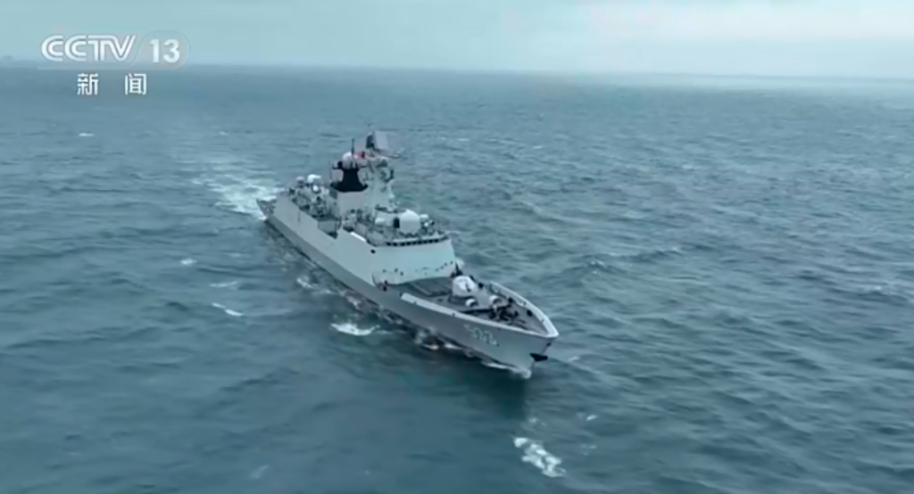 央視《新聞直播間》今下午公布解放軍機(jī)、艦演習(xí)畫(huà)面,報(bào)道旁白指出,在指令下達(dá)、到達(dá)目標(biāo)區(qū)域后,解放軍東部戰(zhàn)區(qū)軍艦隨即展開(kāi)戰(zhàn)斗部署,艦上各型武器系統(tǒng)隨時(shí)做好打擊準(zhǔn)備,“開(kāi)展多維度、立體式飽和打擊”。另外,東部戰(zhàn)區(qū)空軍出動(dòng)數(shù)十架次戰(zhàn)機(jī)實(shí)施戰(zhàn)巡,到達(dá)目標(biāo)后實(shí)施各類(lèi)戰(zhàn)術(shù)動(dòng)作,“在陸軍和火箭軍的支援掩護(hù)下,多機(jī)型編組滿掛實(shí)彈,飛赴預(yù)定空域,建立多個(gè)打擊陣位”。
