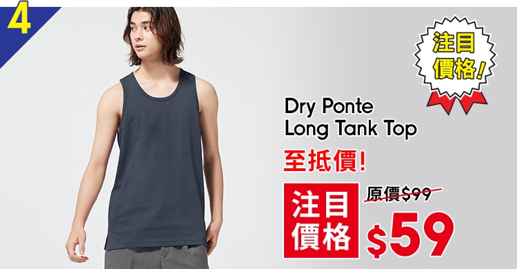 ▲必?fù)尩哪醒b款式包括:速干運(yùn)動(dòng)背心Dry ponte long tank top系列(原價(jià)$99,折后只售$59)