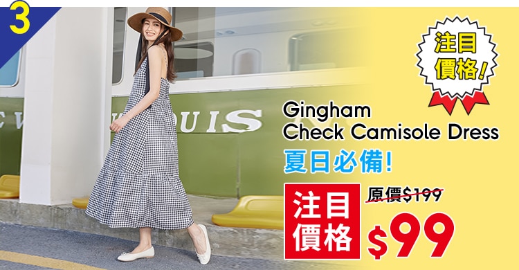 ▲必?fù)尩呐b款式包括:吊帶連身長(zhǎng)裙Gingham Check Camisole Dress系列(原價(jià)$199,折后只售$99)