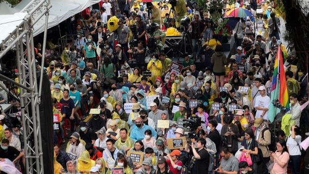 臺立法機(jī)構(gòu)院會今續(xù)審“國會改革”法案,院外今也有“臺灣公民陣線”、“經(jīng)濟(jì)民主連合”、“公投護(hù)臺灣聯(lián)盟”、“臺灣民主實(shí)驗(yàn)室”等數(shù)超過六十個公民團(tuán)體再次號召群眾于立法機(jī)構(gòu)集結(jié)。昨天藍(lán)營已傳出消息,指控綠營今會動員群眾、甚至有中南部黑道北上來抗議,遭綠則反批無證據(jù)亂指控。而今一早9點(diǎn),議場外已陸續(xù)有民眾冒雨前來。