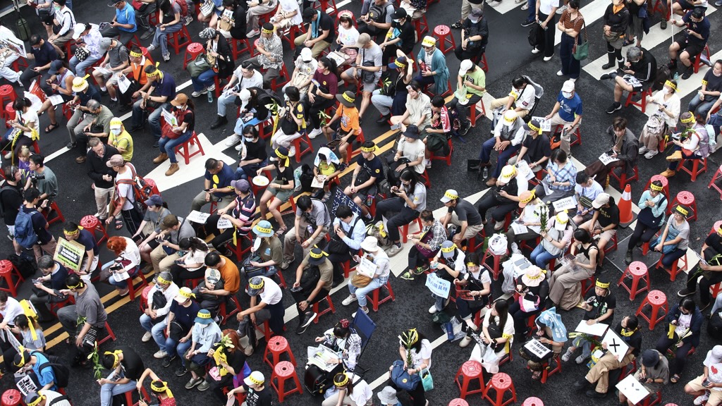 ▲超過(guò)50個(gè)民團(tuán)24日號(hào)召民眾在“立法院”外青島東路與濟(jì)南路集結(jié),要求法案退回委員會(huì)重審?,F(xiàn)場(chǎng)畫(huà)面堪比“太陽(yáng)花運(yùn)動(dòng)”。中時(shí)