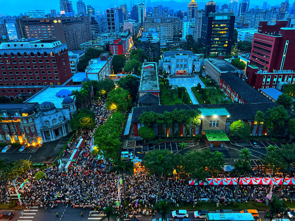 ▲超過(guò)50個(gè)民團(tuán)24日號(hào)召民眾在“立法院”外青島東路與濟(jì)南路集結(jié),接近傍晚,民眾從濟(jì)南路沿著中山南路到“監(jiān)察院”將馬路擠滿(mǎn) 。