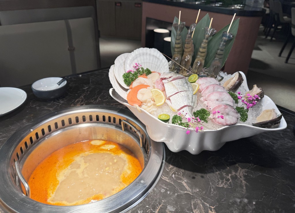 吃慣麻辣鍋、牛肉鍋或椰子雞鍋的朋友,不妨來這間主打海南糟粕醋湯底的邊爐店試試。 糟粕醋是海南的一種傳統(tǒng)醬料,將稻米釀酒后剩余的糟粕發(fā)酵而產(chǎn)生的酸醋,加少許辣椒、蒜頭及油等煮開,再制成湯料,最適合配海鮮及鮮雞吃,微辣中帶酸甜,又有幾分酒香,極受海南人歡迎。