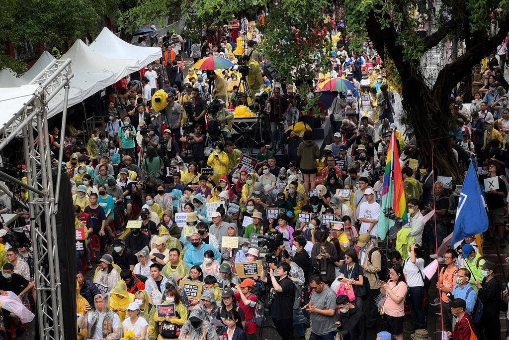 ▲圖為24日,“立法院”外超過40個團體聯(lián)合舉辦“國會”濫權(quán),民主倒退,公民搶救,“立院”集結(jié)行動。中時新聞網(wǎng)
