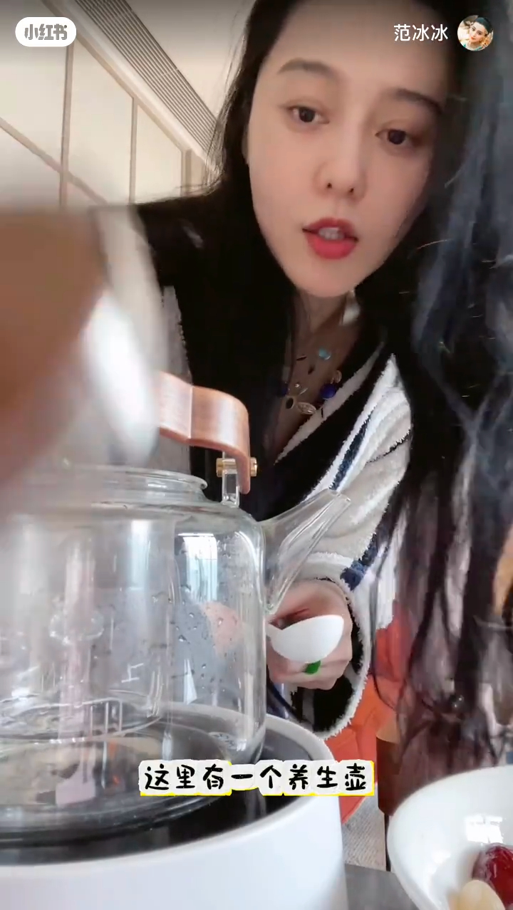 范冰冰之后吃早餐,又煮養(yǎng)生茶保養(yǎng)。