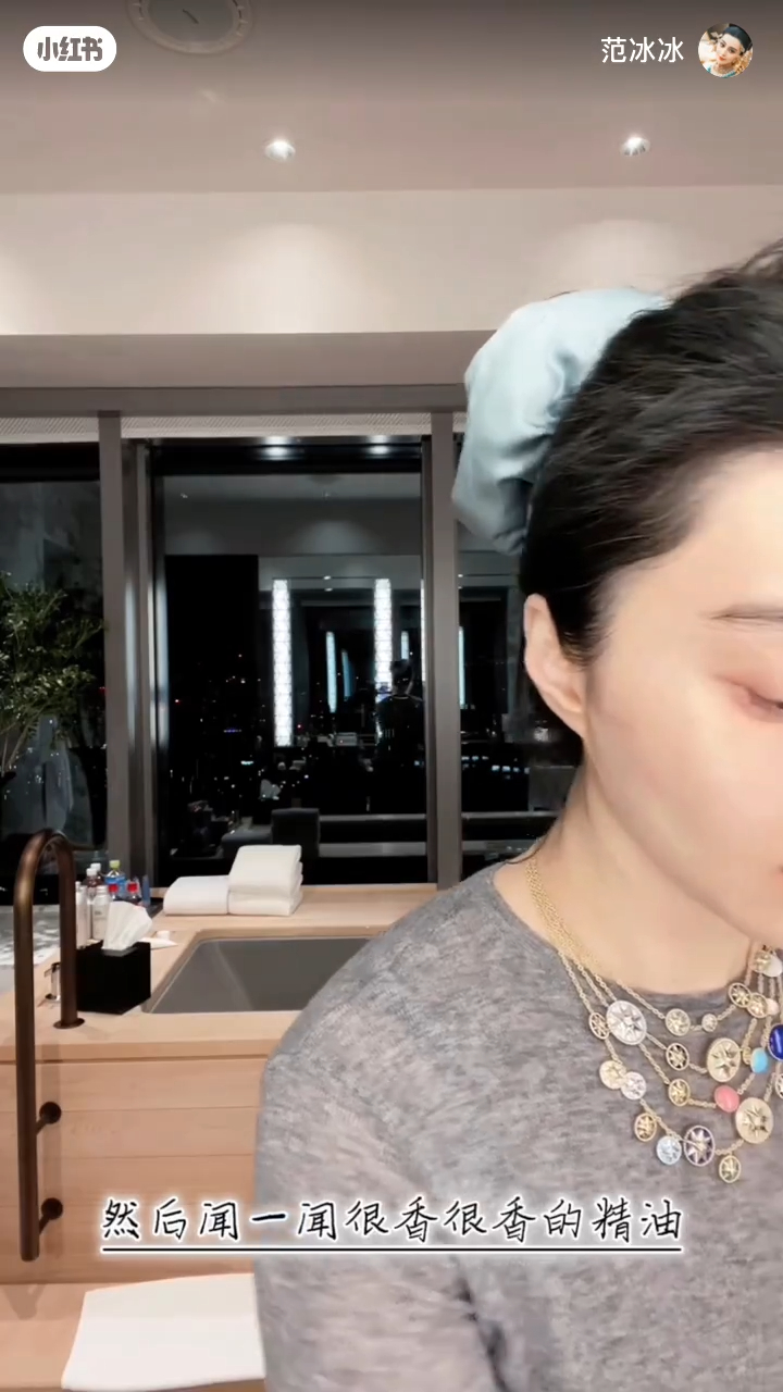 影片中所見,剛起床未刷牙洗臉的范冰冰便在大露臺拍片,外望180度維港景色,俯瞰山下建筑物和維港靚景,范冰冰也相當喜歡,并說:“陰天還是很美的,有它自己的味道吧!”范冰冰吃過早餐,又煮養(yǎng)生茶保養(yǎng)后,便在房間整理儀容準備出門,她自爆慳家一面會自己剪瀏海,與早前現(xiàn)身鴨脷洲outlet掃貨同樣令人驚訝。穿上浴袍的她,身后有個保溫柜,內(nèi)里全是一瓶瓶香港很容易買到的烏龍茶,另一邊則可走出戶外,放有一大盆植物。范冰冰近來經(jīng)常在豪宅內(nèi)拍片,見到其家中裝潢帶點日系簡約風,另一段影片就見到她身在浴室,同樣有個日式浸浴,且有落地大玻璃窗,可一邊浸浴,一邊欣賞外面景觀。