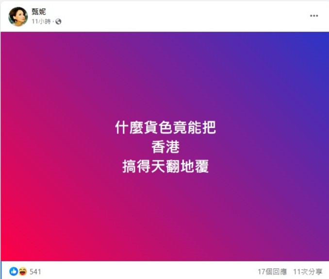 甄妮今日在FB出帖文,以不點名形式暗寸新何太。