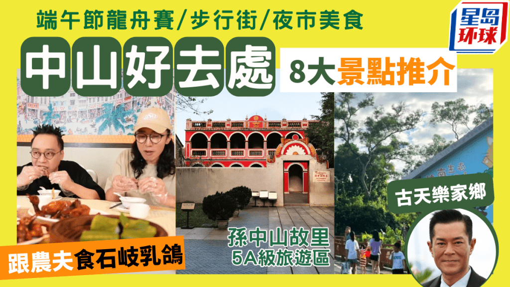 中山是粵港澳大灣區(qū)城市之一,與廣州、佛山、江門、珠海為鄰,是香港人探親、旅游好去處。中山景點有國家5A級旅游景區(qū)孫中山故里旅游區(qū),包含歷史、文化、玩樂等元素,而近期主演賣座電影《九龍城寨之圍城》的古天樂也是原籍中山,古天樂家鄉(xiāng)是個小規(guī)模生態(tài)旅游區(qū)。端午節(jié)快到,大型龍舟文化活動帶來一番熱鬧,還有吃地道美食,不要錯過C君、陸永推薦的石岐乳鴿,這樣的中山旅程才夠圓滿。