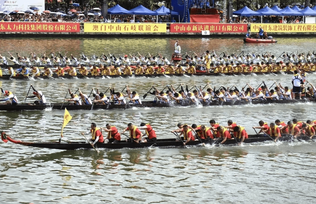 每年端午節(jié),石岐都舉行賽龍舟,2024年,每年端午節(jié)(中山)龍舟邀請賽,將有60隊龍舟隊伍參賽。