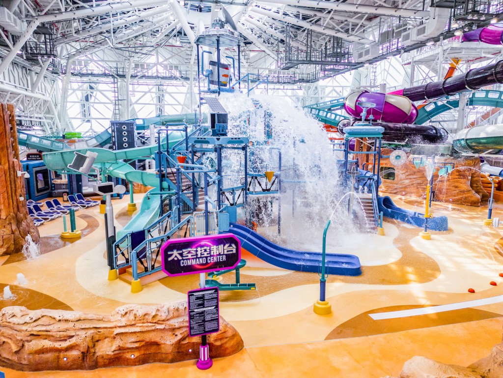 16個(gè)以太空為主題的游樂設(shè)施,包括結(jié)合刺激攀升及沖刺下水的極速水上過山車、全城唯一室內(nèi)沖浪模擬器,以及7個(gè)滑水道設(shè)施、2個(gè)造浪池、一個(gè)橫跨室內(nèi)室外的“天際星空池”、246米星空激流之旅、以及3.7米深潛水池,同時(shí)挑戰(zhàn)平臺(tái)跳水及攀巖歷險(xiǎn)的“天崖海角”。