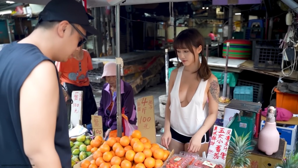 早前一名身材火辣的“水果攤妹”在臺北士林區(qū)的社中市場擺檔,引起網(wǎng)民熱烈關注,近日同一拍攝者臺灣YouTuber黑男在其《黑男邱比特》頻道,再捕獲士林性感美女,新影片“臺北街邊小吃:炸甜點”中,見到一位穿上Deep V小背心的年輕女子正在賣炸鮮奶,影片曝光后,美女的身份被起底,與“水果攤妹”是同一人。