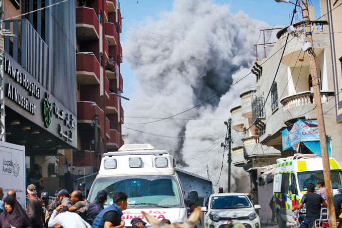▲以色列上周六為營(yíng)救人質(zhì),空襲加沙中部努賽賴特難民營(yíng),遇襲地升起濃煙。