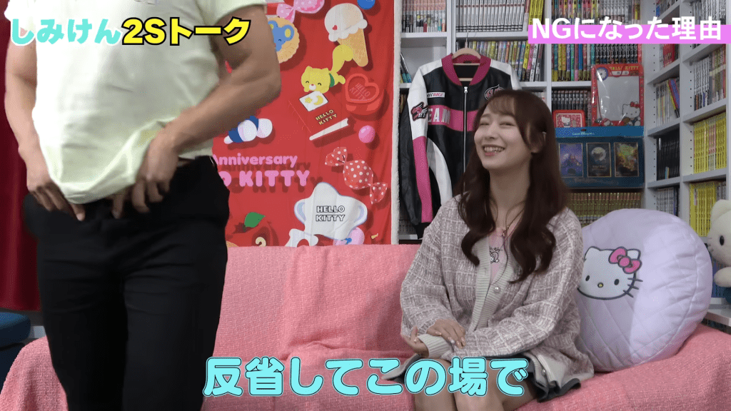 白石茉莉奈還在影片中親自示范清水健當(dāng)時(shí)的動(dòng)作,伸手掐清水健的胸部,讓觀眾更快明白當(dāng)時(shí)的情形,清水健被摸得害羞不已,忍不住自嘲“羞恥、差勁”,并親口向白石茉莉奈道歉。