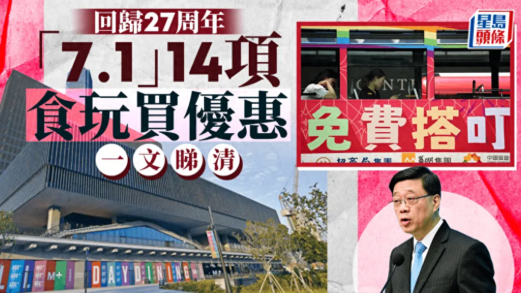 今年是香港七一回歸27周年。港府行政長官李家超今日(11日)出席行會前見記者時,公布部分七月一日回歸優(yōu)惠,包括食玩買行優(yōu)惠,更多優(yōu)惠將會陸續(xù)公布。