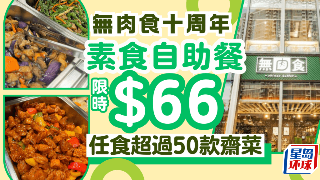 在百物騰貴的時代,一頓經(jīng)濟(jì)實(shí)惠的素食自助餐顯得尤為珍貴。 迎接第十周年,素食餐廳“無肉食”特別推出超值優(yōu)惠,下午茶時段的自助餐僅需$66/位,讓素食愛好者們享受超過50款美味佳食。