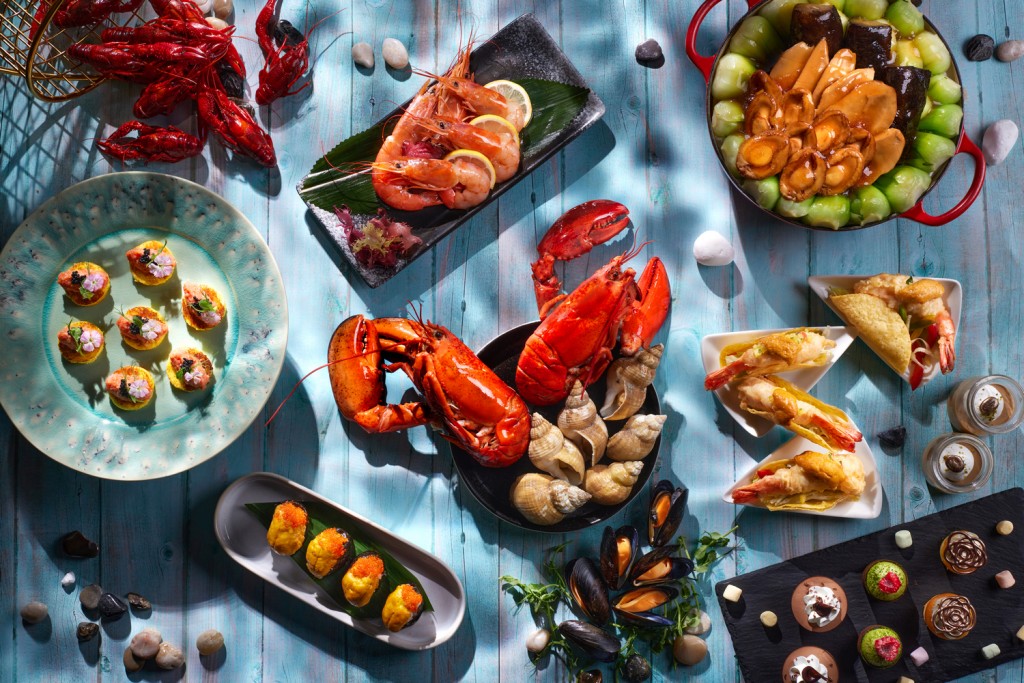 香港萬麗海景酒店萬麗咖啡室的“萬”游海陸自助晚餐精選各式海鮮,如可持續(xù)發(fā)展新鮮蒸加拿大龍蝦、蟹腳等,鮮味十足;還有龍蝦喇沙、香烤和牛牛肩扒、和牛沙律、東西風(fēng)味和牛美饌、香烤牛肋骨等多款備受歡迎的熱葷!