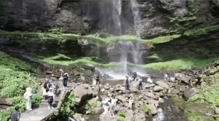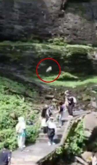 網(wǎng)傳影片可見,在一處瀑布景點下,有不少游客正在拍照。突然,從高處掉落的一塊石頭擊中一名背著包的長發(fā)游客,將其擊倒在地。其身邊的多位游客被這一幕嚇到驚慌失措,原本在瀑布下觀景和拍照的游客趕緊離開了現(xiàn)場,一位男游客查看了被擊中的游客情況,并拿出電話疑似報警。