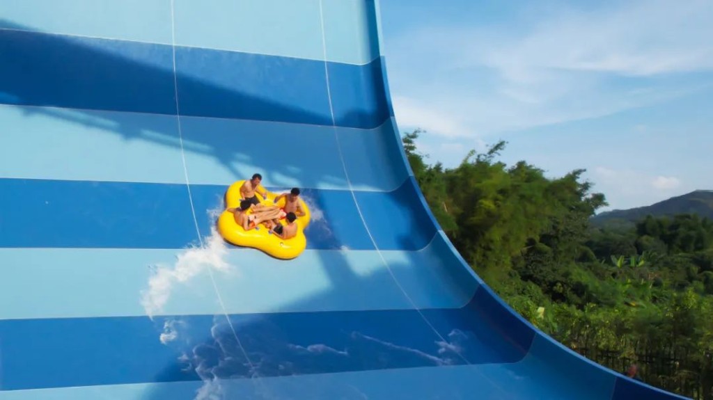 坐落于廣州增城白水寨片區(qū)的森林海嬉水樂(lè)園,剛于2023年4月開(kāi)幕,占地面積高達(dá)300,000平方米,涵蓋了酒店、溫泉、水上樂(lè)園、水上過(guò)山車(chē)、湖上游船等活動(dòng)與游樂(lè)設(shè)施。