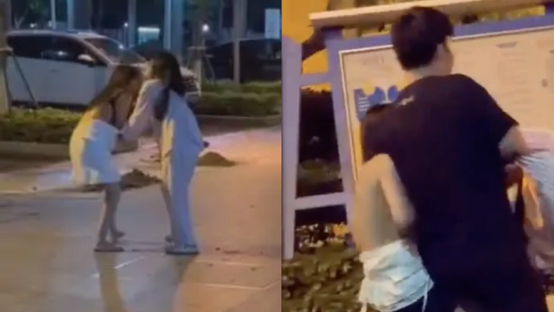 其后,兩人在社區(qū)附近追逐拉扯,小三上身衣服一直被正宮拉扯著,背部露出黑色Bar,不停崩潰尖叫“放開我!”,但正宮由始至終死不放手,不斷掌摑痛罵“我讓你搞!”、“過來我家里搞!”、“來!去我家里床上搞”、“是不是他給你很多錢!”、“你很想要他是吧?。俊?/p>