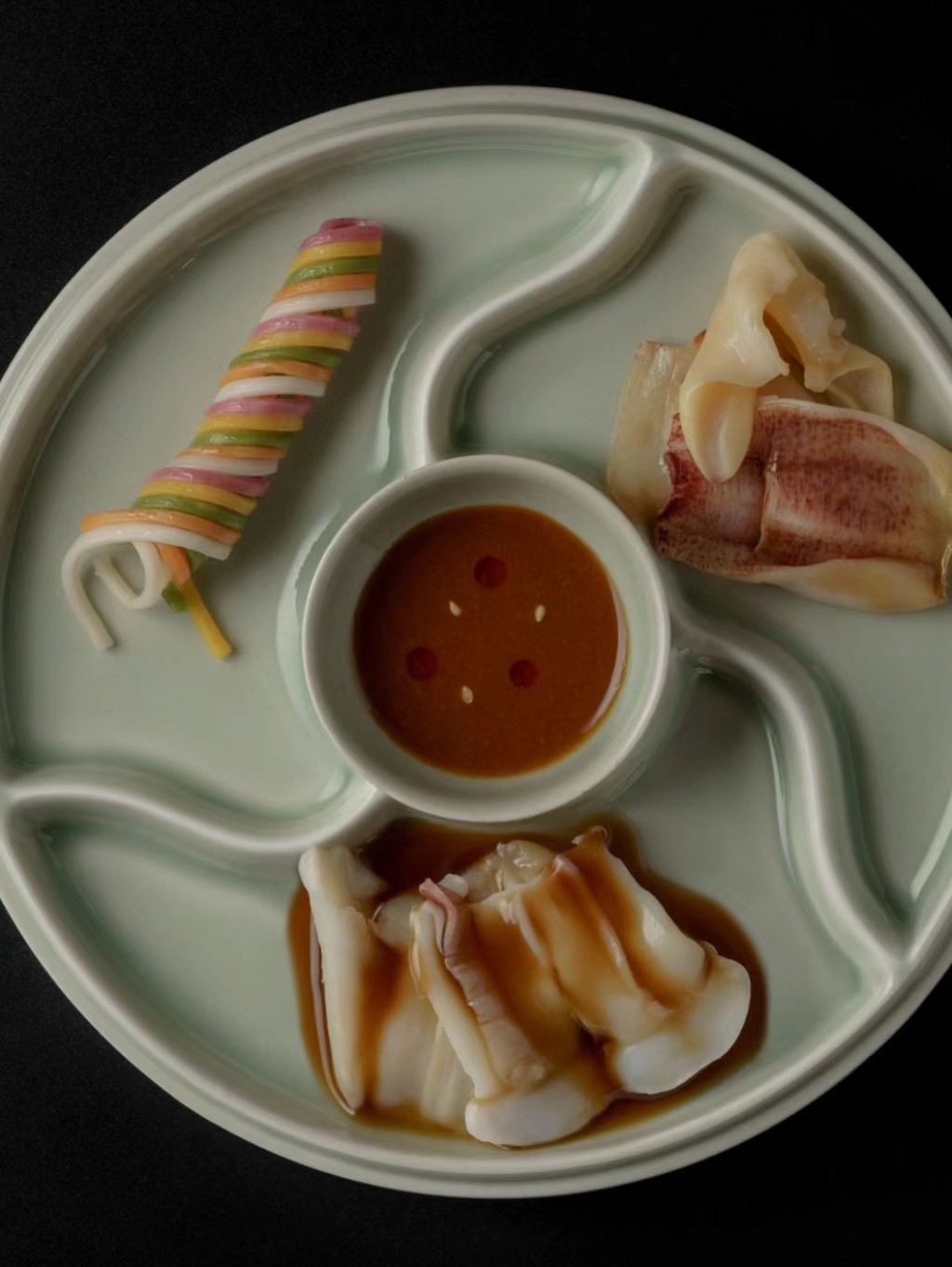 ▲廣州米其林指南2024|綠星餐廳蘭亭永 蚌仔五彩怪味面。