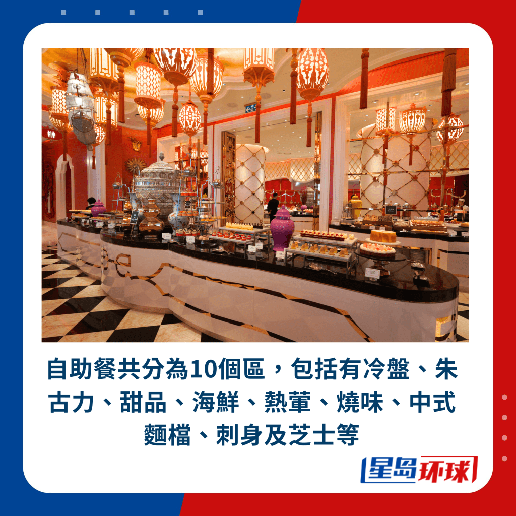 澳門自助餐|自港珠澳大橋通車以來,港人去澳門旅游就更加方便!在兩日一夜的行程中,自助餐通常也是游澳門“老是常出現(xiàn)”的其中一個節(jié)目,亦有不少港人會專程過大海食buffet(自助餐)。澳門星級酒店包羅萬有,幾乎每間都有自己專屬的主題自助餐,各具特色。這次《星島》記者就專誠到五星級永利皇宮酒店實試一下其自助餐,這個buffet更被小紅書網(wǎng)紅封為“兩個胃先夠食”!