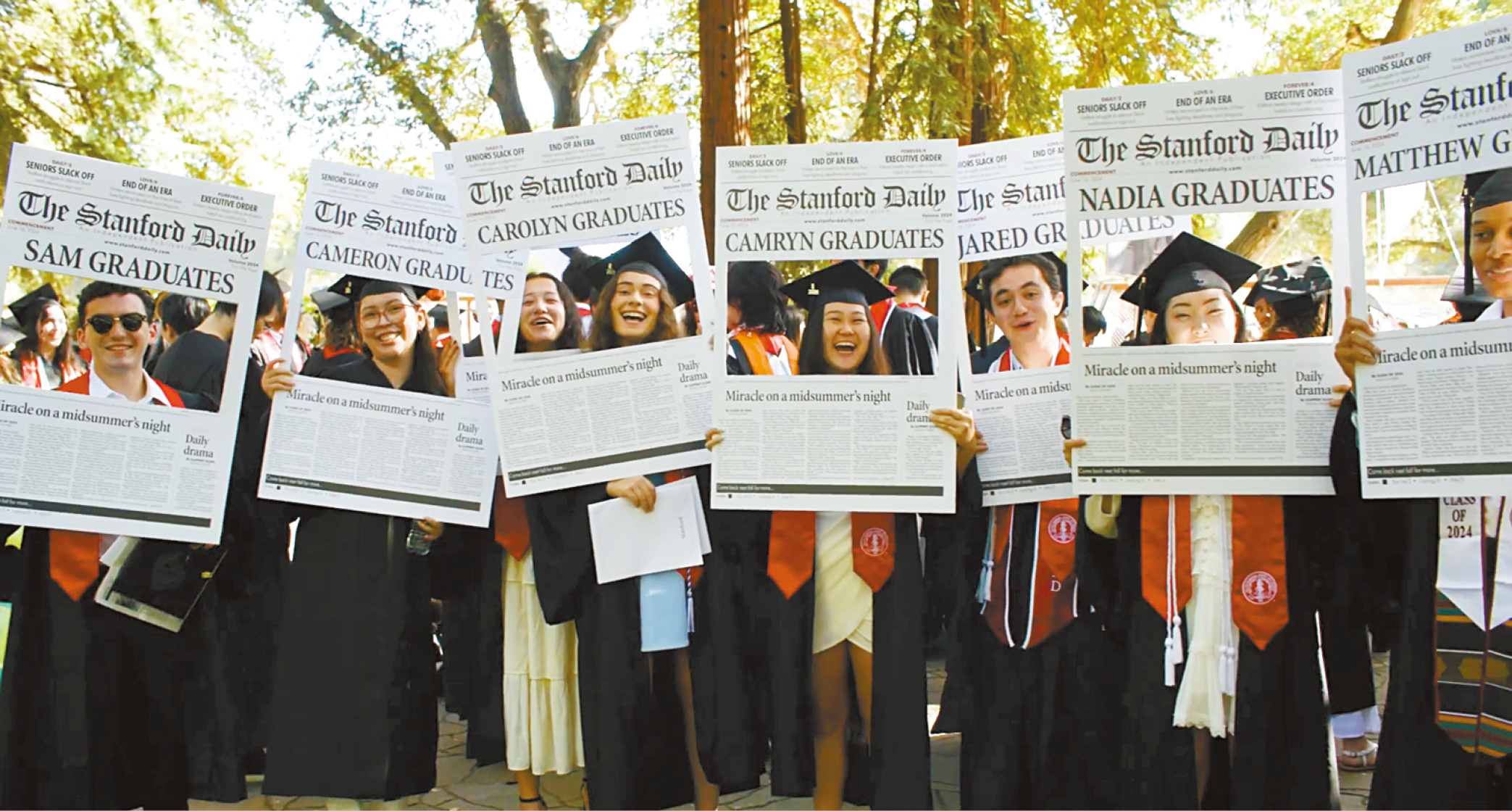 當(dāng)校長(zhǎng)薩勒(Richard Saller)發(fā)表演說(shuō)回應(yīng)學(xué)校過(guò)去充滿挑戰(zhàn)的一年時(shí),約300名學(xué)生離場(chǎng)抗議,其他應(yīng)屆畢業(yè)生為此歡呼,最后約500人離場(chǎng),不少人攜帶著巴勒斯坦旗。