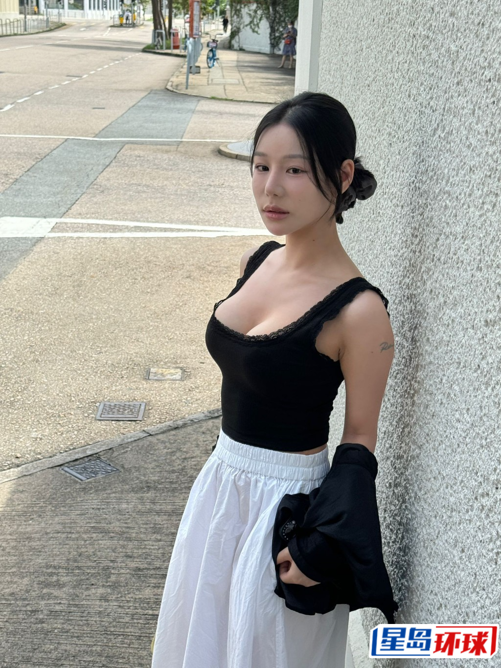 另一位以黑色小背心,加白色長裙出場的佳麗,手上面有紋身,未有透露名字,原本她穿著黑色外套,但一除外套就見到里面她細(xì)一碼的小背心,盡顯其夸張身材。