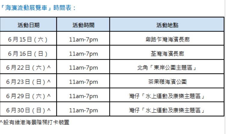 “海濱流動展覽車”時間表