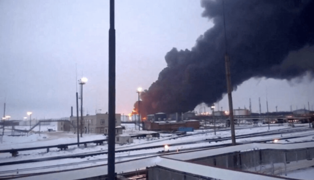 ▲俄羅斯煉油廠遭烏軍無人機(jī)襲擊。路透社