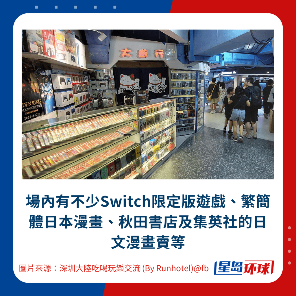 場(chǎng)內(nèi)有不少Switch限定版游戲、繁簡(jiǎn)體日本漫畫、秋田書店及集英社的日文漫畫賣等