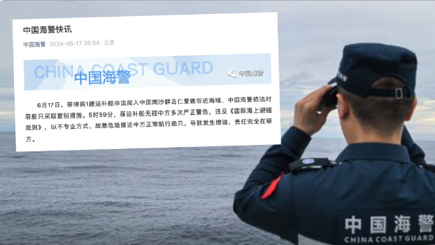 17日,中國海警連續(xù)3次就菲律賓船只侵闖仁愛礁一事發(fā)布消息:最早一條快訊在凌晨4時43分,披露中國海警依法對菲船只采取管制措施;第二條則是早上6時54分,消息顯示,5時59分,菲運補船無視中方多次嚴正警告,違反《國際海上避碰規(guī)則》,以不專業(yè)方式,故意危險接近中方正常航行船只,導(dǎo)致發(fā)生擦碰,責任完全在菲方。當天下午,甘羽在談話中披露更多信息,并正告菲方:任何形式的侵權(quán)挑釁都徒勞無益,中國海警全時戒備、嚴陣以待,堅決維護國家領(lǐng)土主權(quán)和海洋權(quán)益。