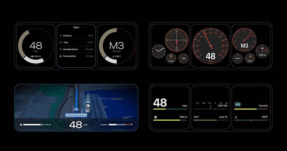 從Apple最新發(fā)布的片段所見,新一代CarPlay不只支援多屏幕串聯(lián),無論是數(shù)碼儀表板、中控臺或客座屏幕,都可以全面接管,而且提供大量訂制選項,由介面到功能,統(tǒng)統(tǒng)可根據(jù)車款而改變,感覺更接近獨立的車載娛樂系統(tǒng)。除了數(shù)碼儀表款式轉(zhuǎn)換,連字型粗幼、指針設(shè)計及公制單位亦可改動。