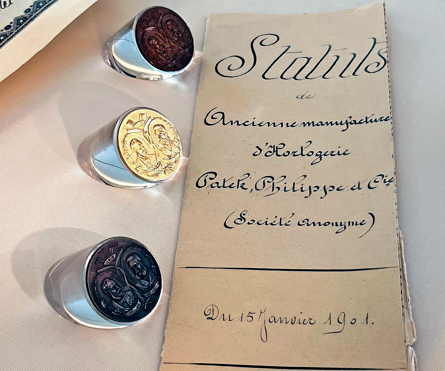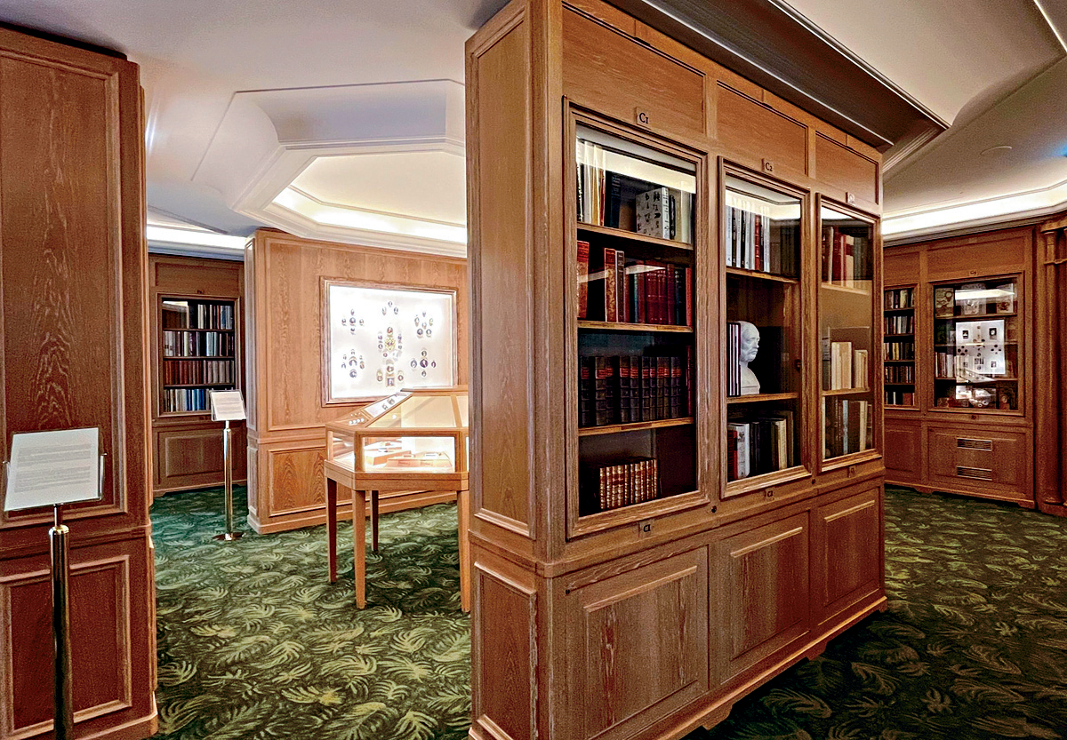 乘電梯直上4樓,就是品牌歷史數(shù)據(jù)庫及圖書室,當中收藏了8,000多本有關(guān)鐘表及相關(guān)主題的書籍,并展示珍貴的微繪琺瑯肖像及鼻煙盒等歷史藏品。同層特辟一角重現(xiàn)Henry Stern,亦即現(xiàn)任總裁Thierry Stern的祖父的昔日辦公室情景。參觀者更可欣賞到特別為慶祝品牌榮譽總裁Philippe Stern的85歲生辰而推出的1938P-001三問及響報時間功能腕表。展品中亦可見到歷史數(shù)據(jù)庫中的珍貴文件,以及創(chuàng)辦人Antoine Norbert de Patek與Jean Adrien Philippe的手稿等。