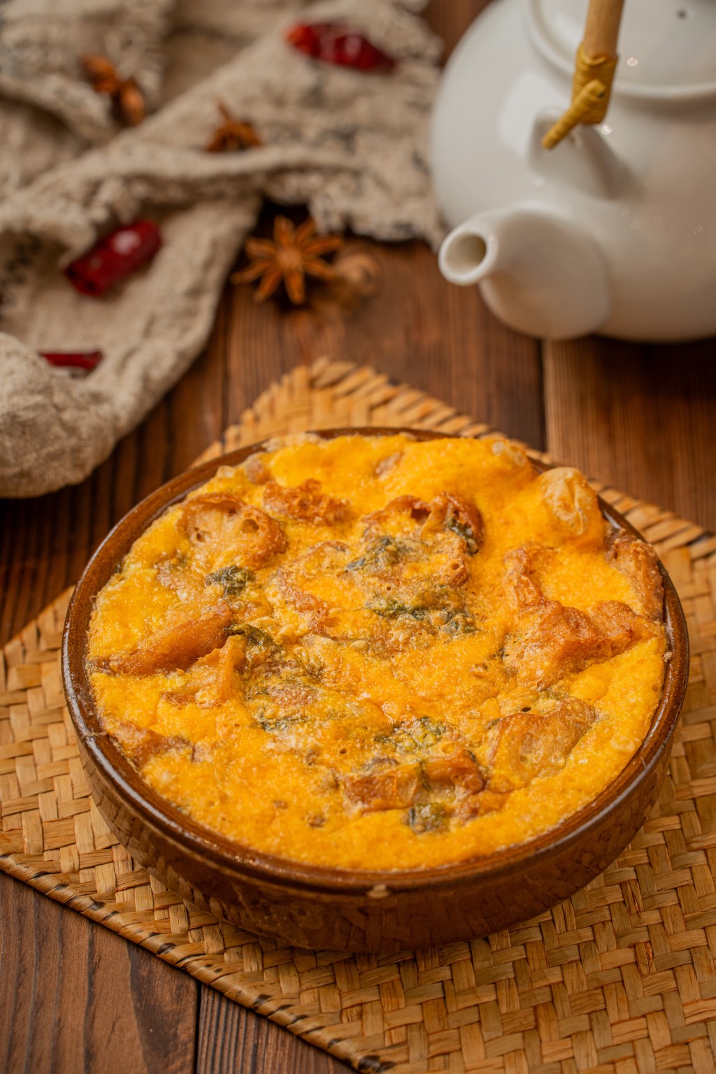 缽仔焗魚腸以古早方法制成,鯇魚魚腸伴以多種配料及食材先蒸后焗,令魚腸表面金黃香脆,吃時肥美不膩口。霸王醃膏蟹是經(jīng)典潮州美食,用本地活口膏蟹入饌,加入秘制傳統(tǒng)潮州生醃汁調(diào)味,經(jīng)過冷凍醃制后,蟹肉晶瑩剔透,蟹膏鮮美嫩滑,每啖都是鮮蟹精華。