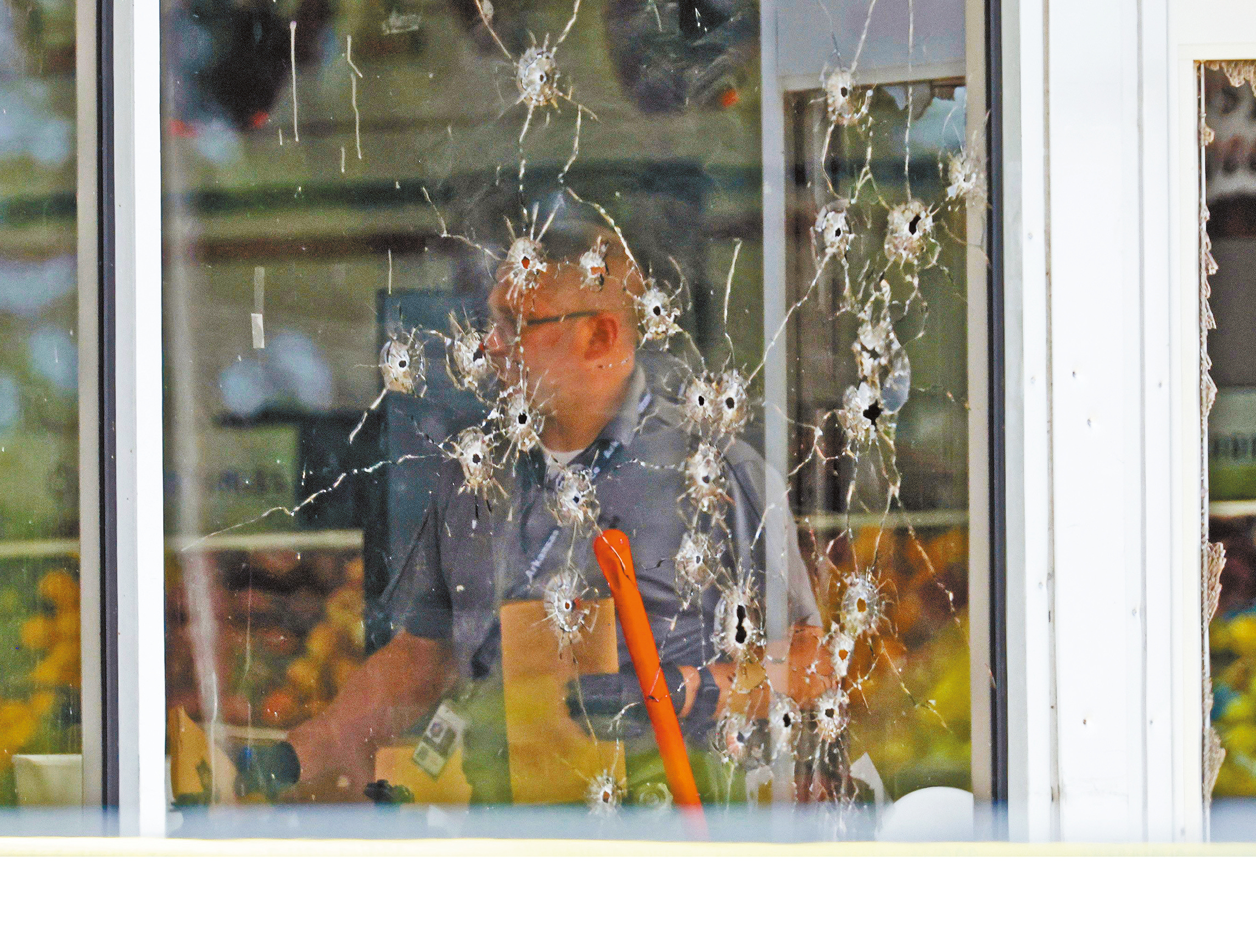 ▲阿肯色州一家超市發(fā)生槍擊案,造成3死10傷,圖為店內(nèi)窗戶上布滿彈孔。 美聯(lián)社