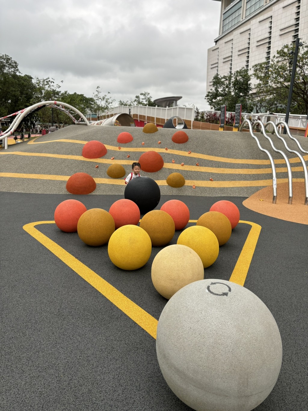 ▲公園內(nèi)有很多打卡位,這些球體讓你想起桌球還是保齡球?(圖片來源:《親子王》)