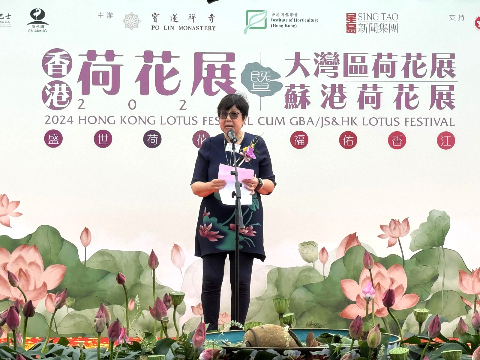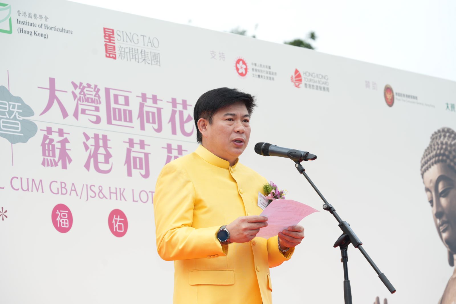 由寶蓮禪寺、香港園藝學(xué)會(huì)及星島新聞集團(tuán)主辦的“香港荷花展暨大灣區(qū)荷花展 蘇港荷花展”今日(22日)隆重揭幕。開(kāi)幕禮于今午舉行,主辦方代表寶蓮禪寺住持凈因大和尚、星島新聞集團(tuán)行政總裁兼社長(zhǎng)蔡晉博士、香港園藝學(xué)會(huì)名譽(yù)會(huì)長(zhǎng)蔡素玉女士、香港園藝學(xué)會(huì)會(huì)長(zhǎng)徐荷芬女士,以及一眾嘉賓,包括:中央人民政府駐香港特別行政區(qū)聯(lián)絡(luò)辦公室尹宗華副主任、文化體育及旅游局局長(zhǎng)楊潤(rùn)雄先生、香港旅游發(fā)展局主席彭耀佳傅士、泰國(guó)駐香港總領(lǐng)事Mr. Chaturont Chaiyakam、中華花藝文教基金會(huì)資深教授李麗淑教授、冠忠巴士集團(tuán)有限公司巿場(chǎng)推廣總監(jiān)李演政先生、昂坪360董事總經(jīng)理董沛銓先生一同見(jiàn)證,為一連十一日在大嶼山寶蓮禪寺舉行的荷花展揭開(kāi)序幕。