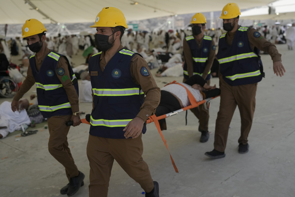 麥加大批朝覲穆斯林之中,不乏有人因高溫不支倒地。