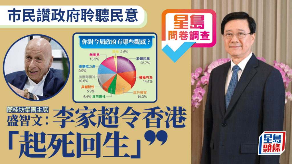 星島問卷調(diào)查?| 市民贊政府聆聽民意,盛智文:李家超令香港“起死回生”