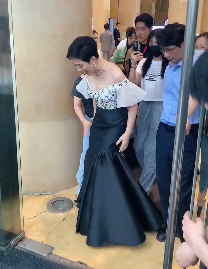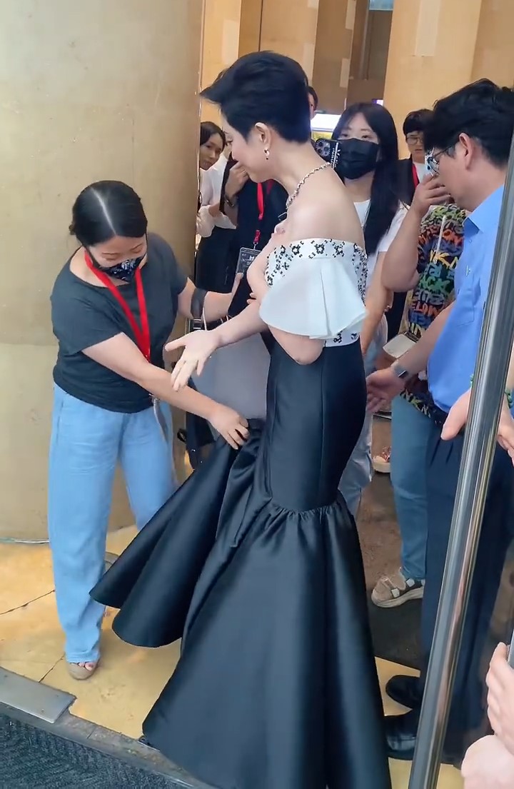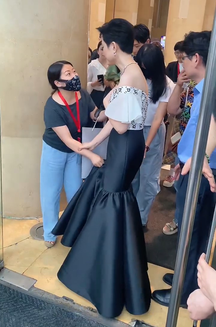 昨日(23日)有網(wǎng)民在小紅書以“陳法蓉外出被工作人員踩裙擺一聲尖叫險(xiǎn)走光”為題發(fā)帖,寫道:“第21屆電影頻道傳媒關(guān)注單元閉幕儀式花絮:陳法蓉外拍,獲大批助理和安保護(hù)駕,不過誰都沒想到差點(diǎn)出幺蛾子的居然是自己人,一名女工作人員在陳法蓉身后不慎踩到了她的裙擺,陳法蓉一聲尖叫,眼疾手快迅速摀住胸口,避免尷尬,隨后微笑面對,大氣!”影片可見,陳法蓉走到酒店大堂時(shí),先有禮貌跟粉絲揮手打招呼,當(dāng)她行到酒店大門時(shí),突然被一名工作人員踩到裙尾,陳法蓉大聲慘叫,下意識立即用左手遮掩胸口,右手緊握那名工作人員的前臂以免仆倒,陳法蓉站穩(wěn)后,笑笑口先請那位冒失的工作人員先行,自己再慢慢步出酒店登車離開。