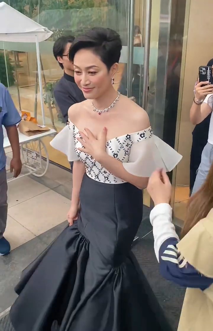 陳法蓉當(dāng)日的晚裝很低胸,幸好她也做足防走光措拖。