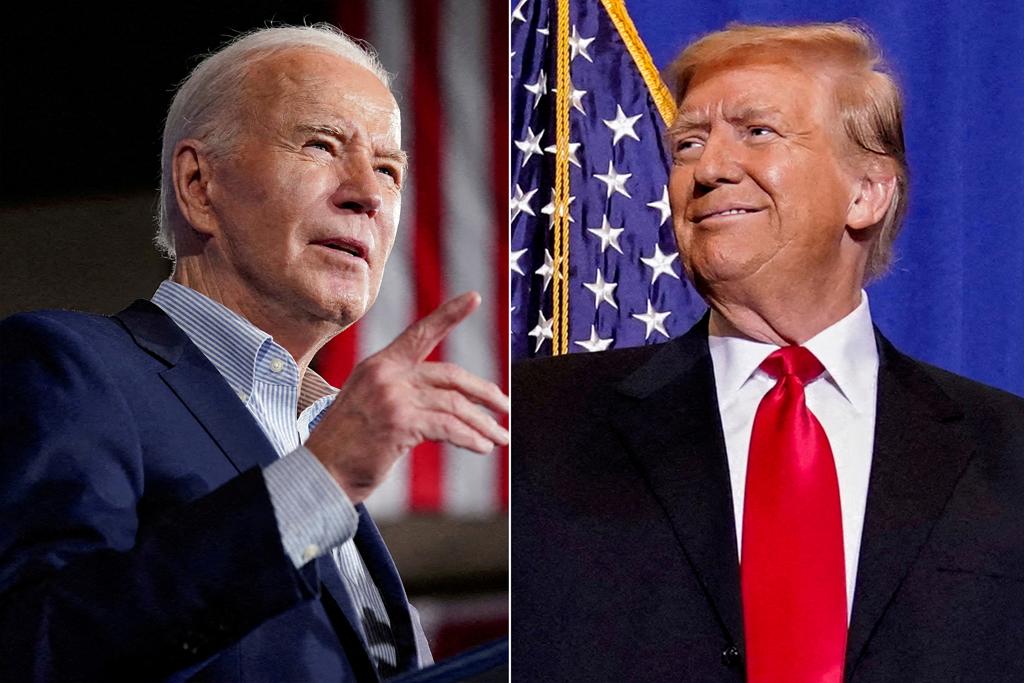 ▲組圖顯示美國總統(tǒng)拜登于2024年3月19日在拉斯維加斯發(fā)表的講話;2024年1月16日,共和黨總統(tǒng)候選人特朗普在新罕布夏州的競選集會上發(fā)表講話。(路透社)