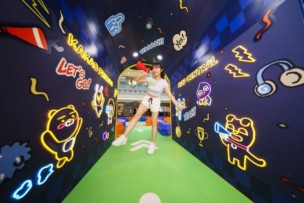 ▲場內(nèi)特設(shè)6大打卡位及3大運動游樂體驗區(qū),多位KAKAO FRIENDS人氣角色穿梭其中。