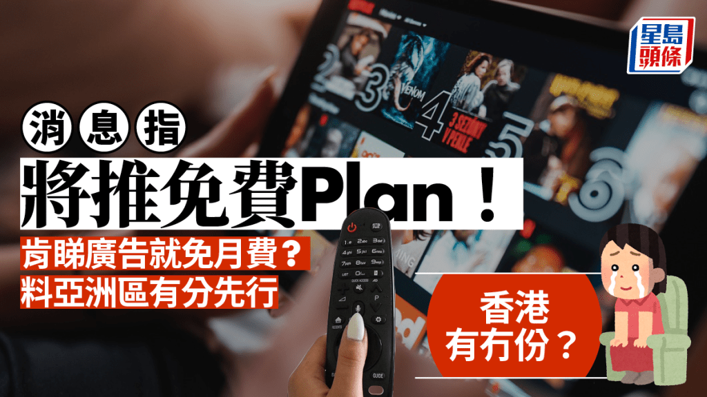 Netflix傳推出免費(fèi)方案!Netflix是不少港人觀看電影和劇集的首選串流平臺(tái),據(jù)外媒消息指,Netflix目前正計(jì)劃推出“免費(fèi)訂閱(含廣告)”服務(wù),代表用戶可以免費(fèi)使用Netflix平臺(tái),惟需不定時(shí)觀看廣告,適用地區(qū)更有可能包括香港?