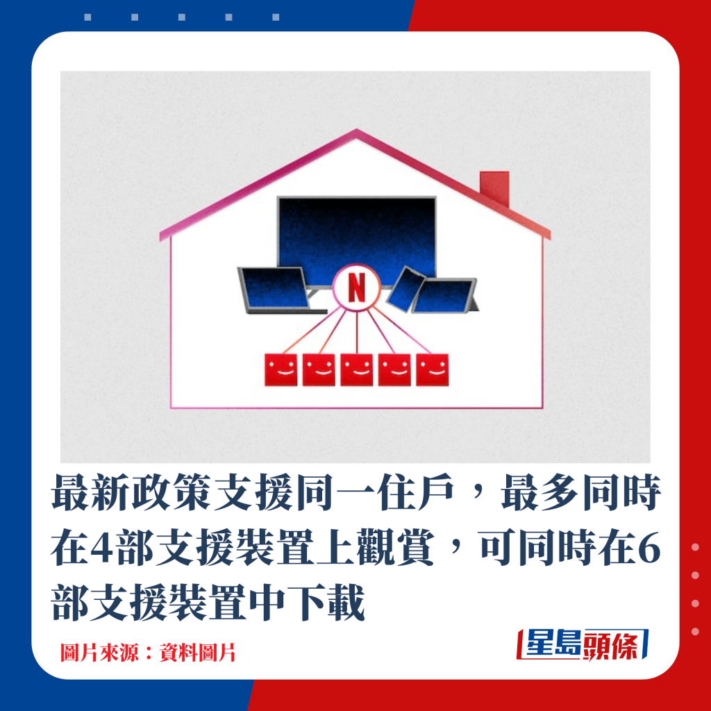 ▲最新政策支持同一住戶,最多同時(shí)在4部支持裝置上觀賞,可同時(shí)在6部支持裝置中下載