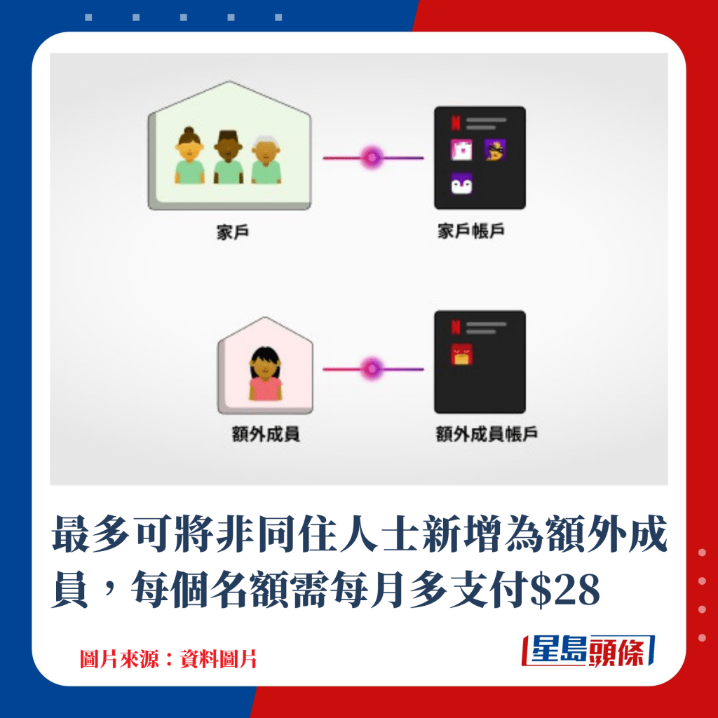 ▲最多可將非同住人士新增為額外成員,每個(gè)名額需每月多支付$28
