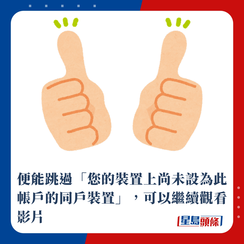 便能跳過「您的設(shè)備上尚未設(shè)為此帳戶的同戶設(shè)備」,可以繼續(xù)觀看影片