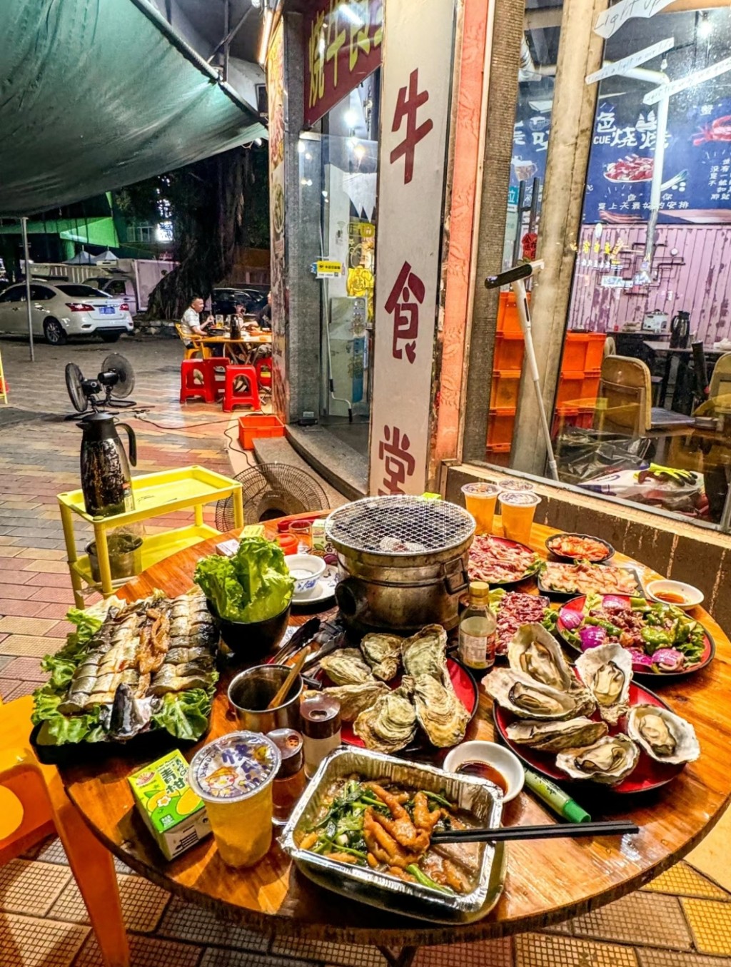 中山燒牛食堂是當(dāng)?shù)厝送盹?、消夜好去處,舊式炭火燒烤,保持食物原味。必吃正宗沙溪牛肉,肉質(zhì)嫩滑,雪花牛肉油膏豐腴,還有鱔、大生蠔等。其他打卡美食有錫紙大白菜、腸粉、清蒸大生蠔、錫紙雞爪,記得喝茅根竹蔗水清熱氣。