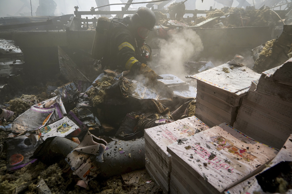 ▲烏克蘭哈爾科夫一間印刷廠遭受襲擊。美聯(lián)社