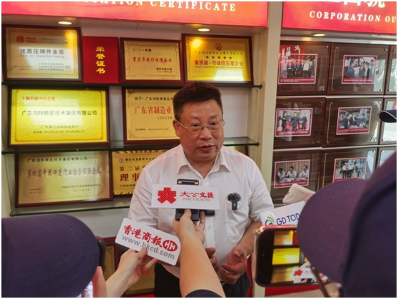 ▲鴻特精密技術(shù)股份有限公司副總裁邱碧開接受采訪。
